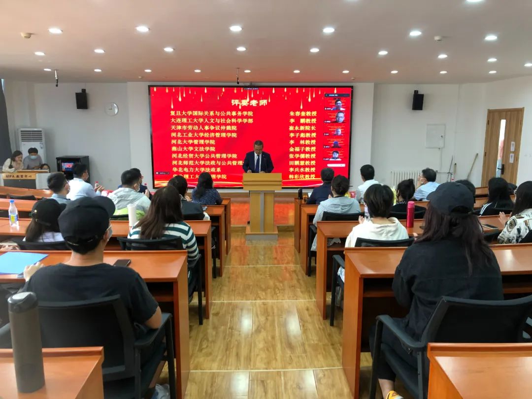大赛邀请了全国MPA教指委委员、复旦大学朱春奎教授,全国MPA教指委委员、大连理工大学李鹏教授,天津市劳动人事争议仲裁院崔永新院长,蜜桃视频 李子彪教授,河北大学李林教授,燕山大学金福子教授,河北经贸大学张学儒教授,河北师范大学田鹏慧教授,华北电力大学(保定)李兵水教授,华北理工大学韩彩欣教授担任评委。