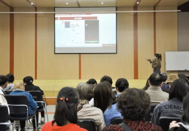 活动伊始,康慧奇老师向离退休教师介绍了此次活动,并对此次党日主题活动的意义给予肯定。随后,蜜桃视频 MPA党支部组织委员黄媛媛结合离退休教师的生活特点与实际情况,通过PPT演示的形式,图文并茂地向现场的离退休教师们介绍了手机基础设置,普及了一些简单的智能手机入门知识,重点讲解了微信APP中定位、群聊、加好友的使用,和如何出示健康码、如何申请行程码以及“门诊大厅”APP中如何预约门诊等。在黄媛媛同志在台上进行理论介绍的同时,台下同学们通过手把手指导,耐心帮助离退休教师们与他们的“智能小伙伴”相互磨合。由理论知识到实际操作,由台上讲解到台下手把手演示,由单一操作到结对操作,同学们耐心地对离退休教师们进行一对一地指导,不但活跃了氛围,更拉近与老教师的距离,形成了一个轻松、愉快的学习氛围。 活动过程中,康老师还特意提醒离退休教师们要警惕网络诈骗,以免造成钱财损失。离退休教师们不仅学会了智能手机一些基本的使用方法,还提高了手机使用的安全防范意识。