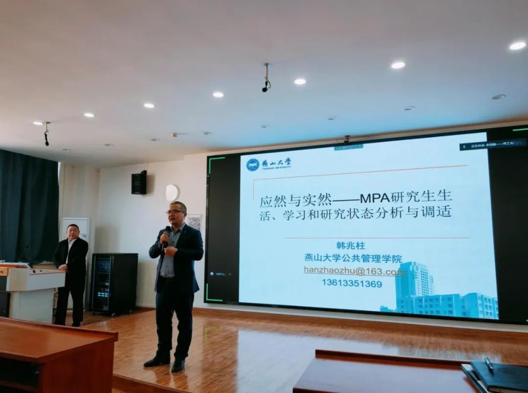 微风和煦,万象更新。2023年3月18日,恰逢第32届天津运河桃花文化商贸旅游节开幕之际,文法大讲堂第四十四期于下午2点准时开讲,燕山大学公共管理学院韩兆柱教授受邀出席,带来题为《应然与实然:MPA研究生生活、学习和研究状态分析与调试》的专题讲座。本次讲座由蜜桃视频 闫文博副院长主持,蜜桃视频 马立民副院长、蜜桃视频 部分老师及学生参加了此次讲座。