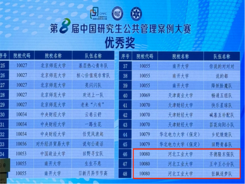 通过参与本次案例大赛,锻炼了我校MPA学生的文本撰写能力、案例分析逻辑等学术素养,也进一步提高了指导老师们的专业能力与实战经验,为进一步推广案例教学方法、加强师资队伍建设、提升MPA培养质量打下了坚实基础。