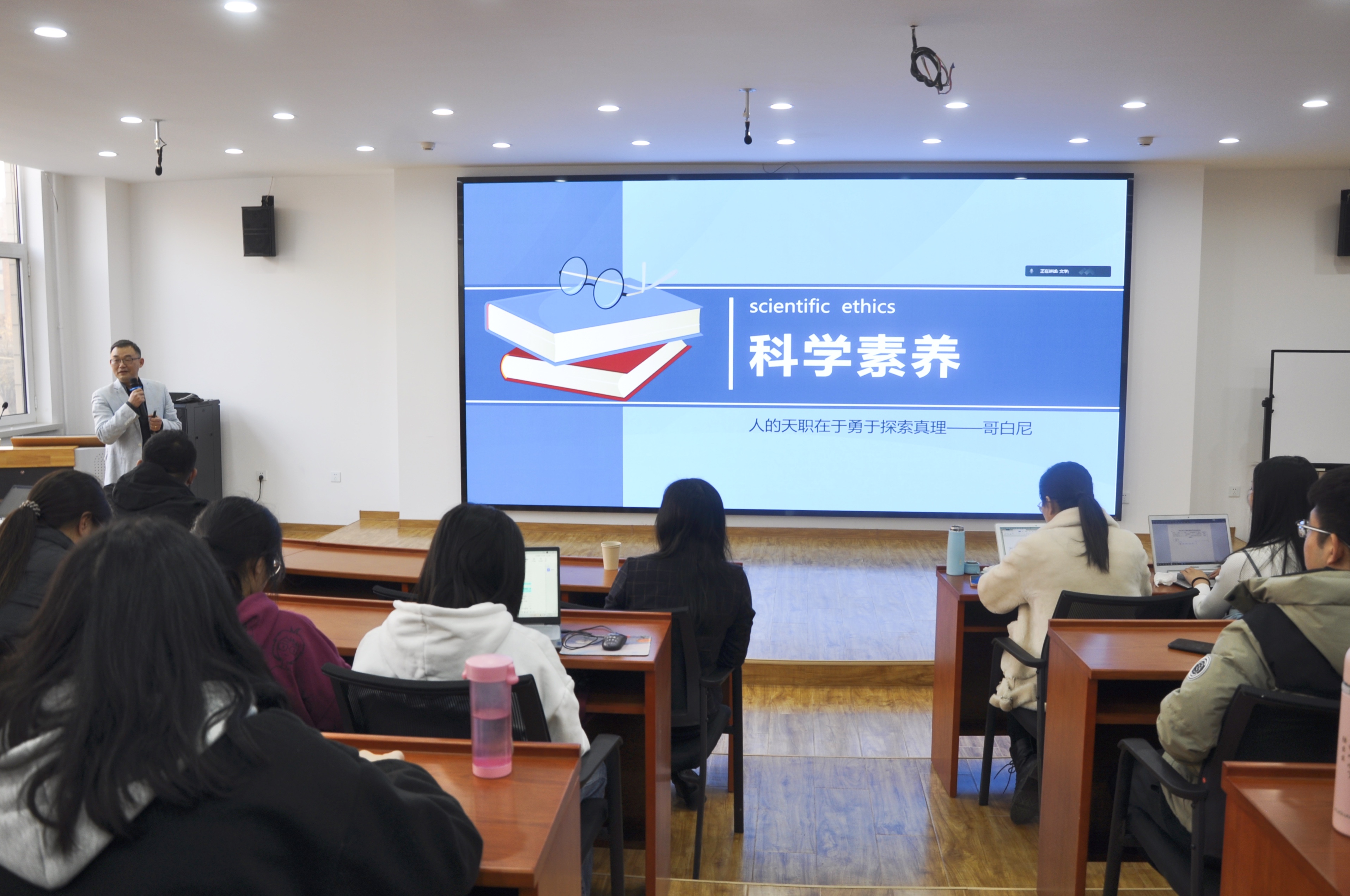 2021年12月5日下午,文法大讲堂第三十五期之《科学素养》讲座在蜜桃视频 东院MPA中心准时开讲。本次讲座特邀蜜桃视频 副校长胡宁教授主讲,蜜桃视频 闫文博副院长主持,李艳双院长和蜜桃视频 部分研究生、本科生参加了本次讲座。