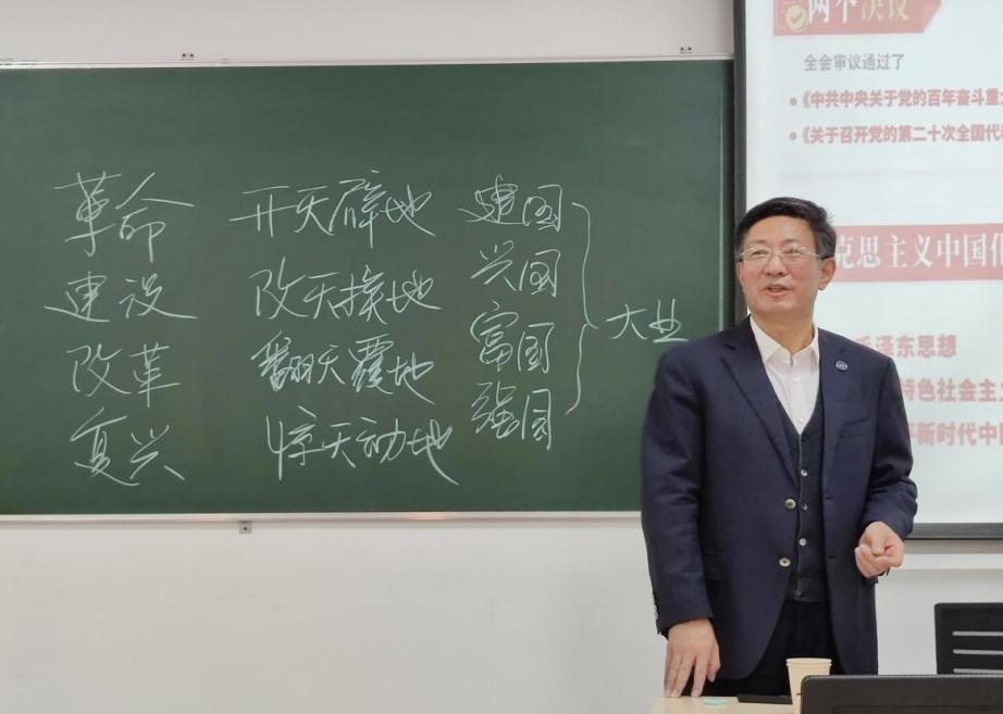 2021年11月26日下午,学校党委书记李强受邀做客第34期“文法大讲堂”,宣讲党的十九届六中全会精神,同时为学院研究生会主办的“先生,开课啦”系列活动上了精彩的第一课。