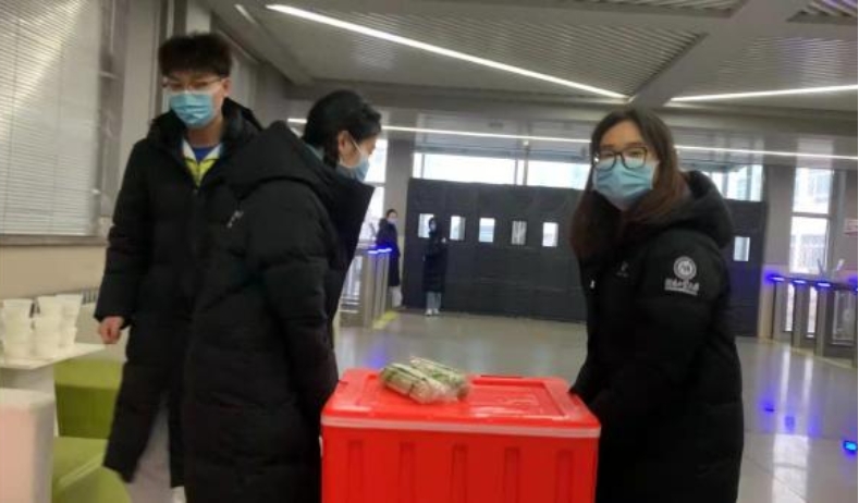 随着疫情的出现,学校立即启动疫情防控应急预案,设立核酸检测点,迅速组织开展全员核酸检测,并全力做好在校师生员工饮食和各项生活服务保障。校内各部门联动,共同出力,将数百份午餐和防疫物资一一装箱,送至冬奥志愿者所在的宿舍楼,蜜桃视频 MPA学生黄媛媛和陈虹宇主动请缨,成为送餐小分队的成员,每天为冬奥志愿者女生所在宿舍楼送去一日三餐。“开饭啦开饭啦,同学请来取下餐”,每天饭点楼道里都能听见她们暖心的声音。