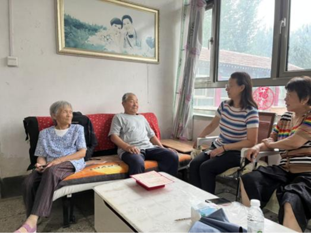好人好事乡风正,传递丹情天地晖。团队中的几位同学去到养老院,体会到了浓浓的人文关怀。老艺术家马广杰先生多年来深耕艺术领域,荣获“河北好人榜”“年度身边好人”等多项荣誉。马广杰先生虽年近古稀,但仍坚持创作,包揽了附近几个村庄的壁画,宣扬了优秀传统文化和党的政策,令人感动不已。