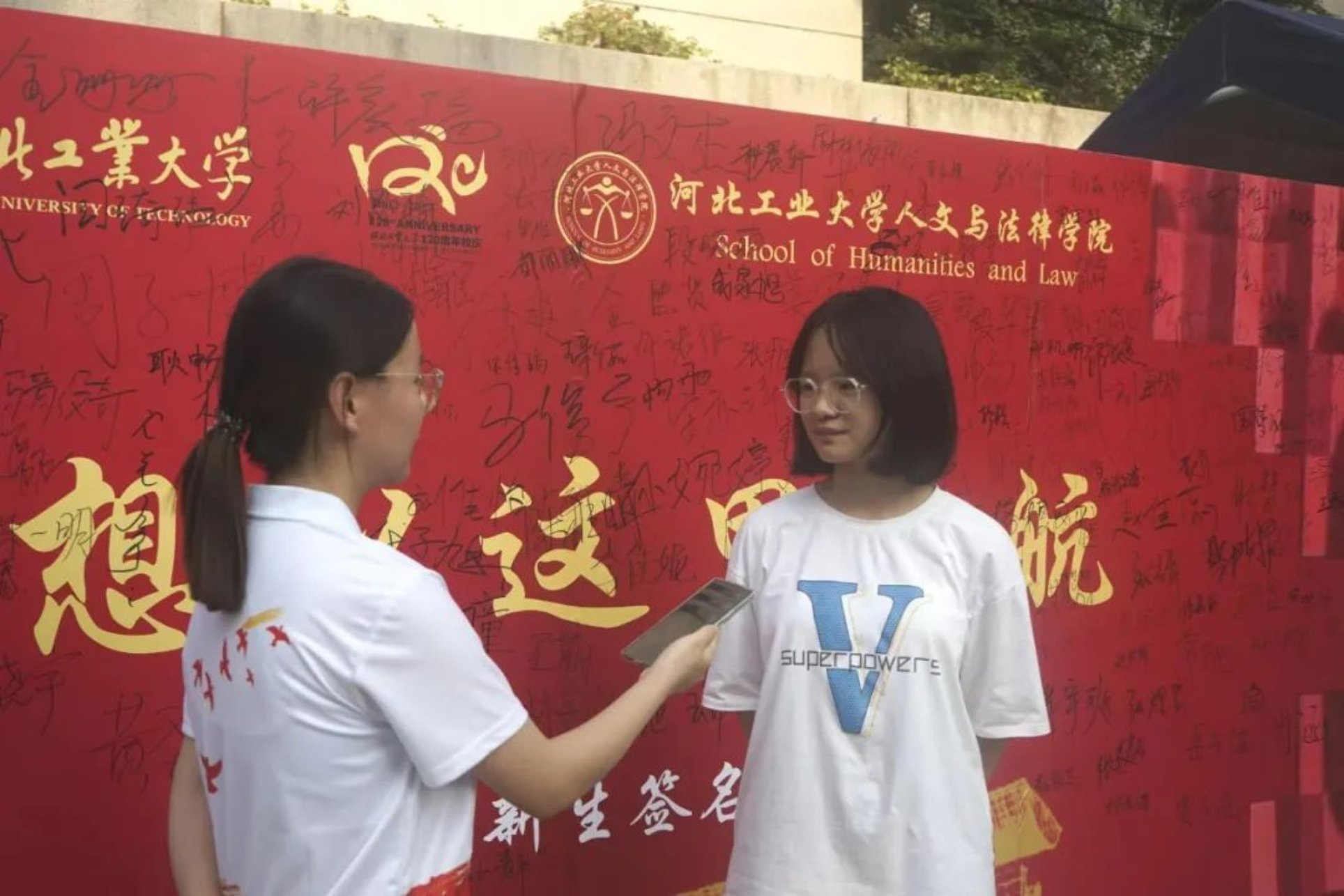 在迎新点,不仅有签名板和风格迥异的KT板,这都是学院为大家准备的浪漫,给足你升学的仪式感,大家都签名、合影了吗?