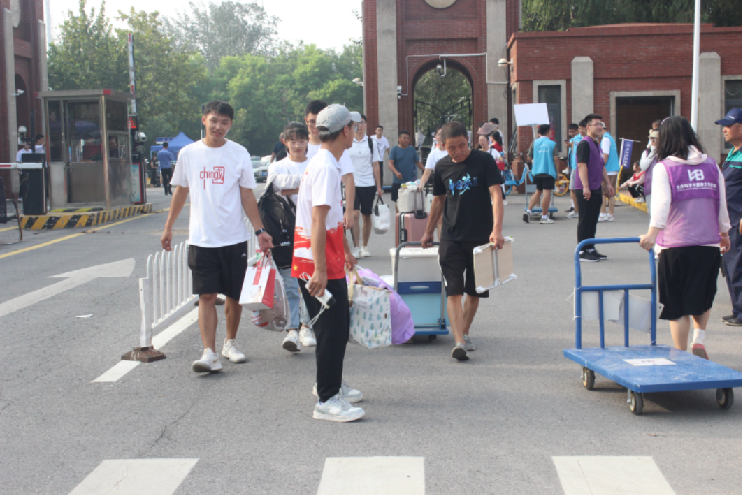 无论是上午还是下午,无论你走在哪个地点,哪里都有志愿者和迎新工作人员,学校门口、寝室门口,到处都能看见他们忙碌的身影,他们热情地为初来乍到的新生们搬运行李引导路线,带给新生们温暖。