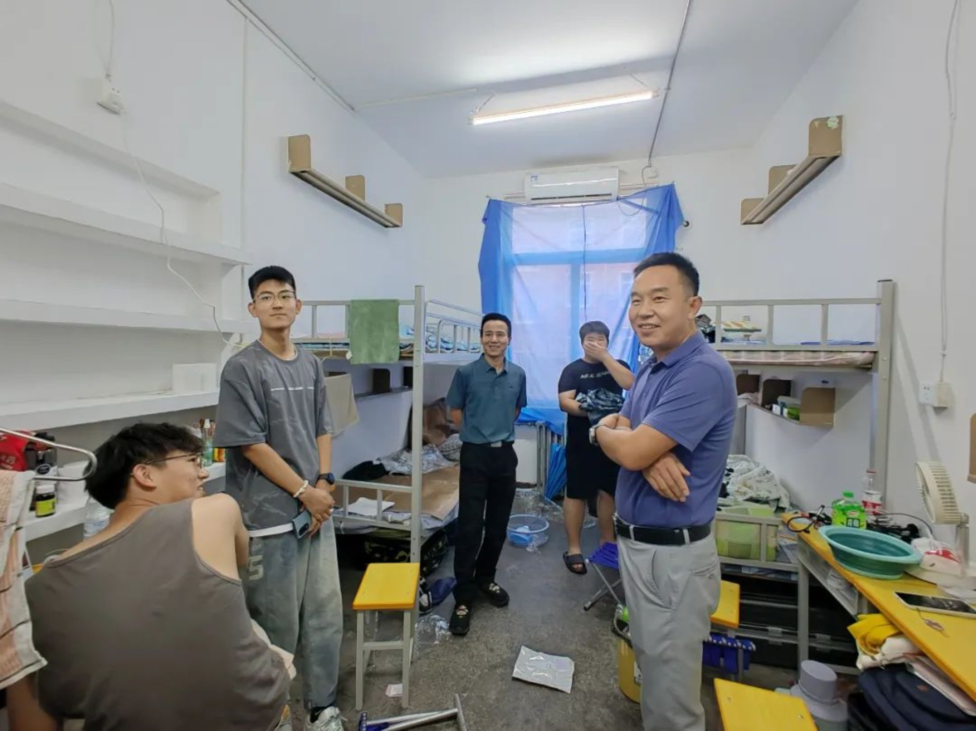 蜜桃视频 领导班子探访了新生宿舍,关注了学院新生的入学状况;除此之外,各位领导还和工作人员进行了亲切交谈,向他们询问了迎新工作的开展情况,展示了学院领导对本次迎新工作的高度重视,让学生们感受到了文法学院的贴心与温暖。