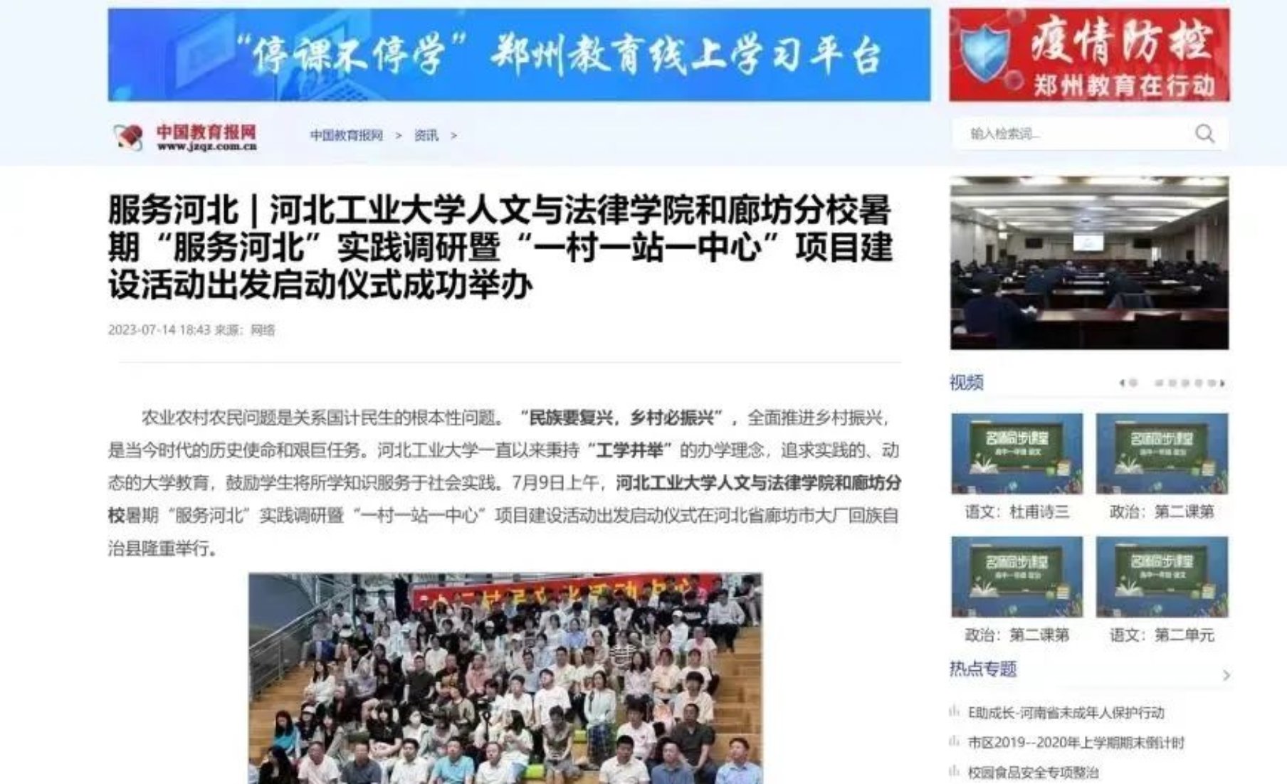 谱绘青春图景,奏响实践赞歌,暑期社会实践进行的同时,蜜桃视频 与廊坊分校暑期“服务河北”实践调研暨“一村一站一中心”项目获得了中国教育电视台、中国教育报、河北新闻网、冀云等多家国家级、省级媒体报道。另外,中国青年报、中国教育报网、中国教育周刊、中国教育报道、中华教育日报、中华学习网等媒体平台也对蜜桃视频 暑期社会实践相关的19篇优秀稿件进行刊登宣传。