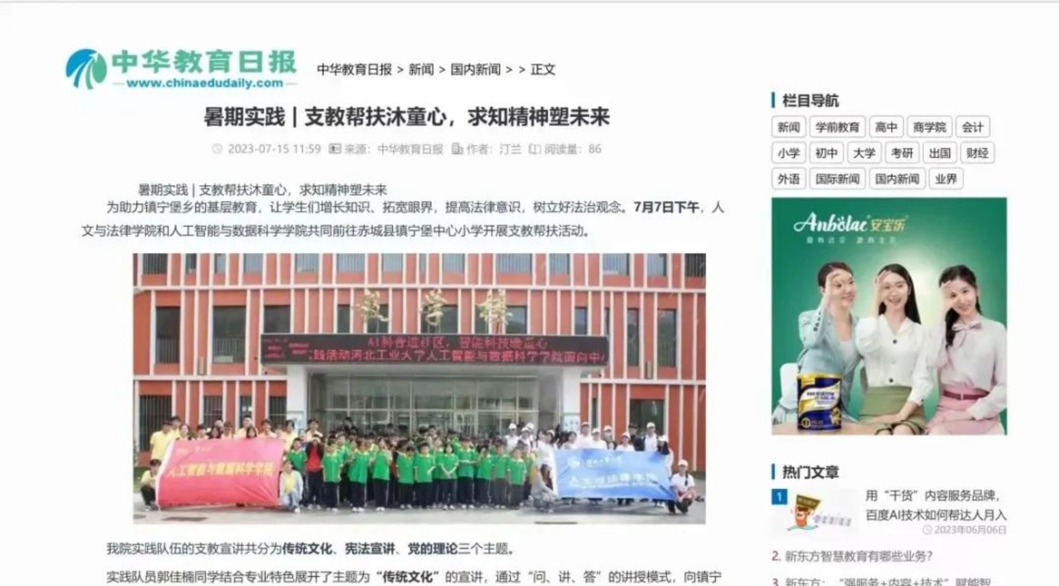 中国教育报网发表