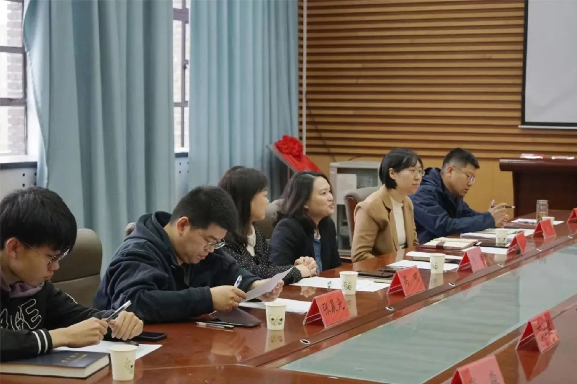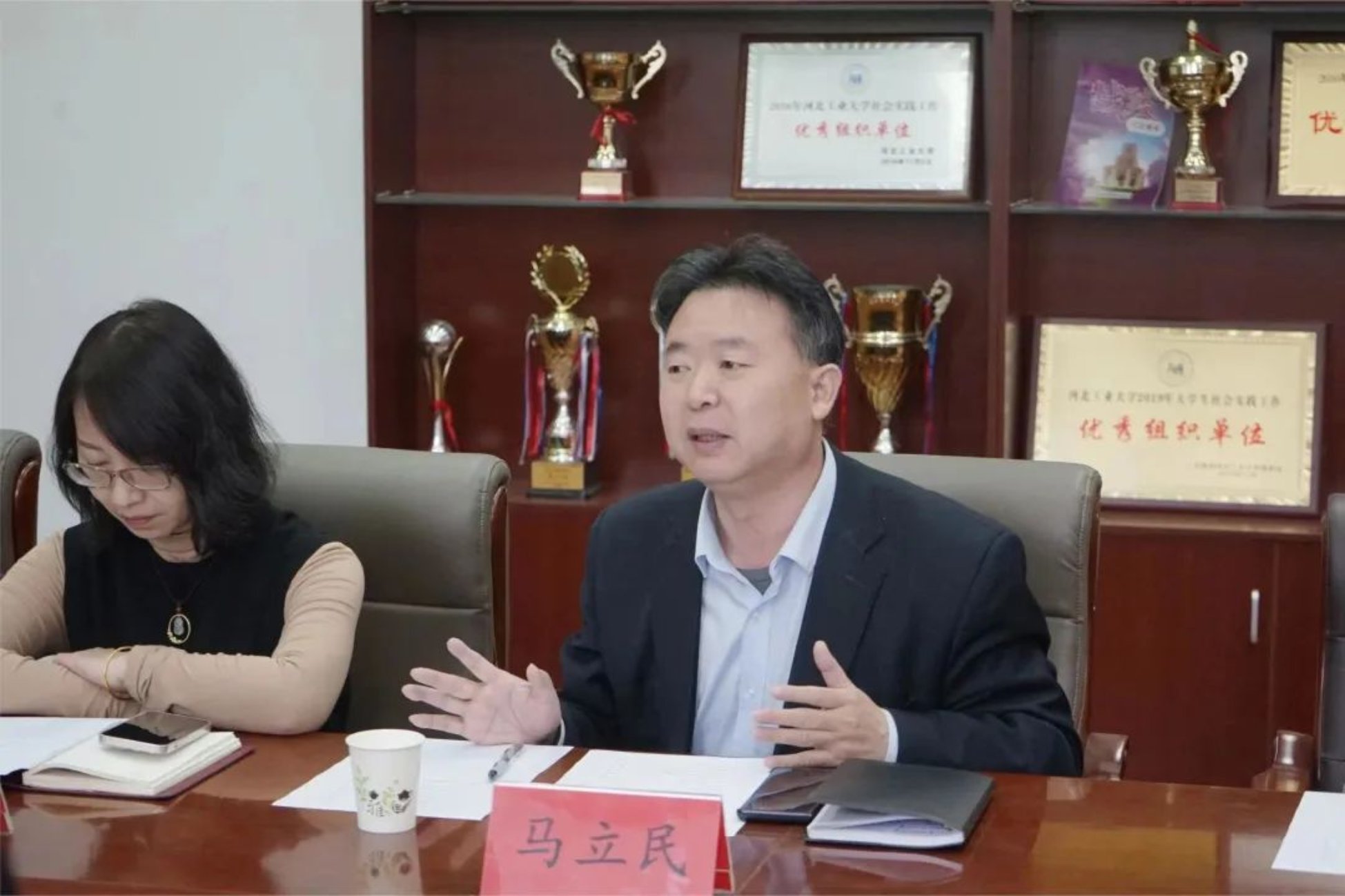 马立民副院长介绍了学院的教学管理工作,阐述了法学、劳动社会保障与公共事业管理以及汉语国际教育专业的创建及招生情况。学校秉承“工学并举”理念,与社会紧密结合,积极培养人才。马立民副院长指出学院践行全程全员实践育人体系,紧密贴合当今人才培养要求,不断完善实践教学体系。并且学院积极与社会建立友好合作关系,逐渐形成了“工学并举”的实践传统。马立民副院长还简述了学院积极参与基层治理工作,学院学生整体的基本素质较高、实力较强,各个专业的学生积极服务社会,与社会及周边社区建立了紧密联系。