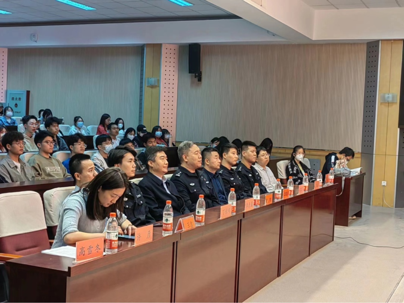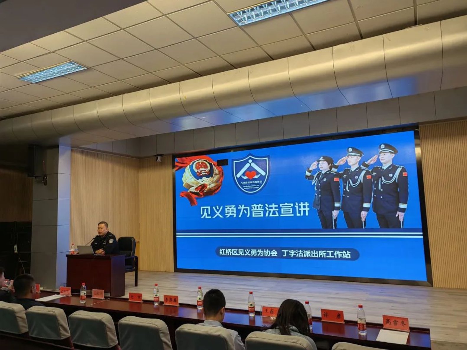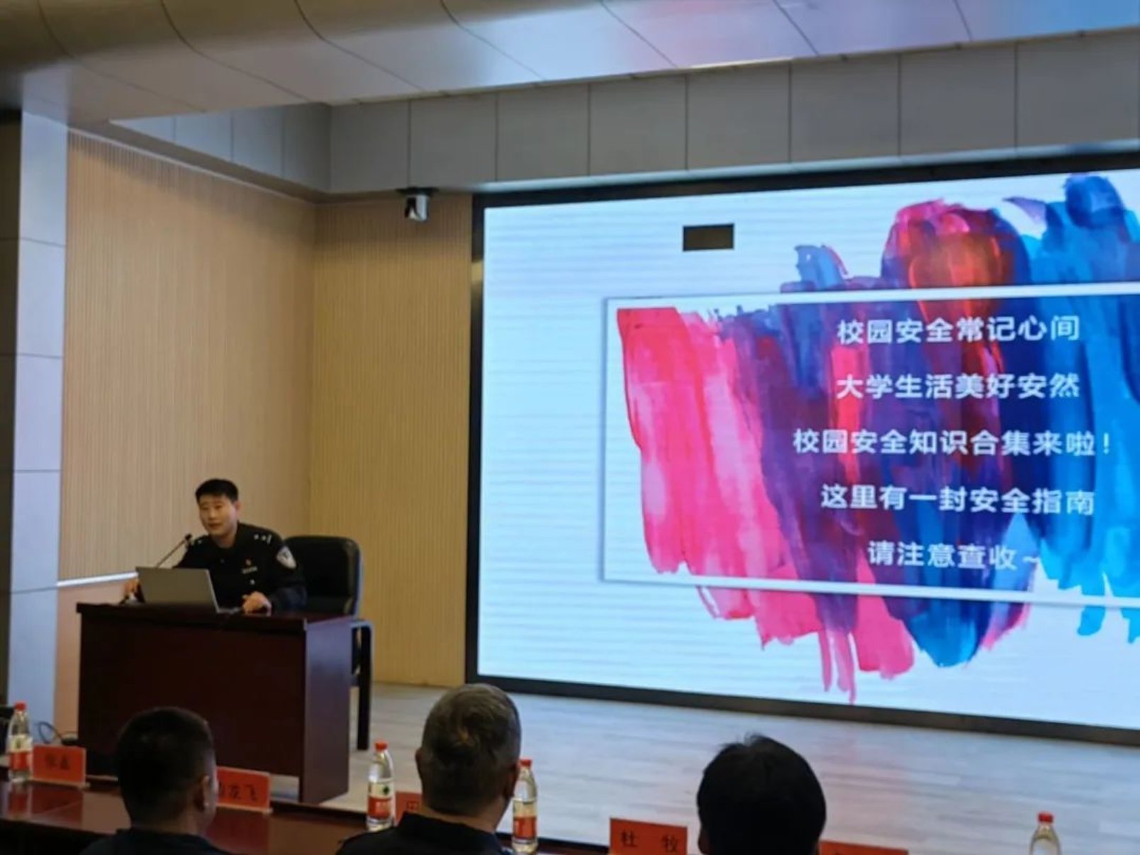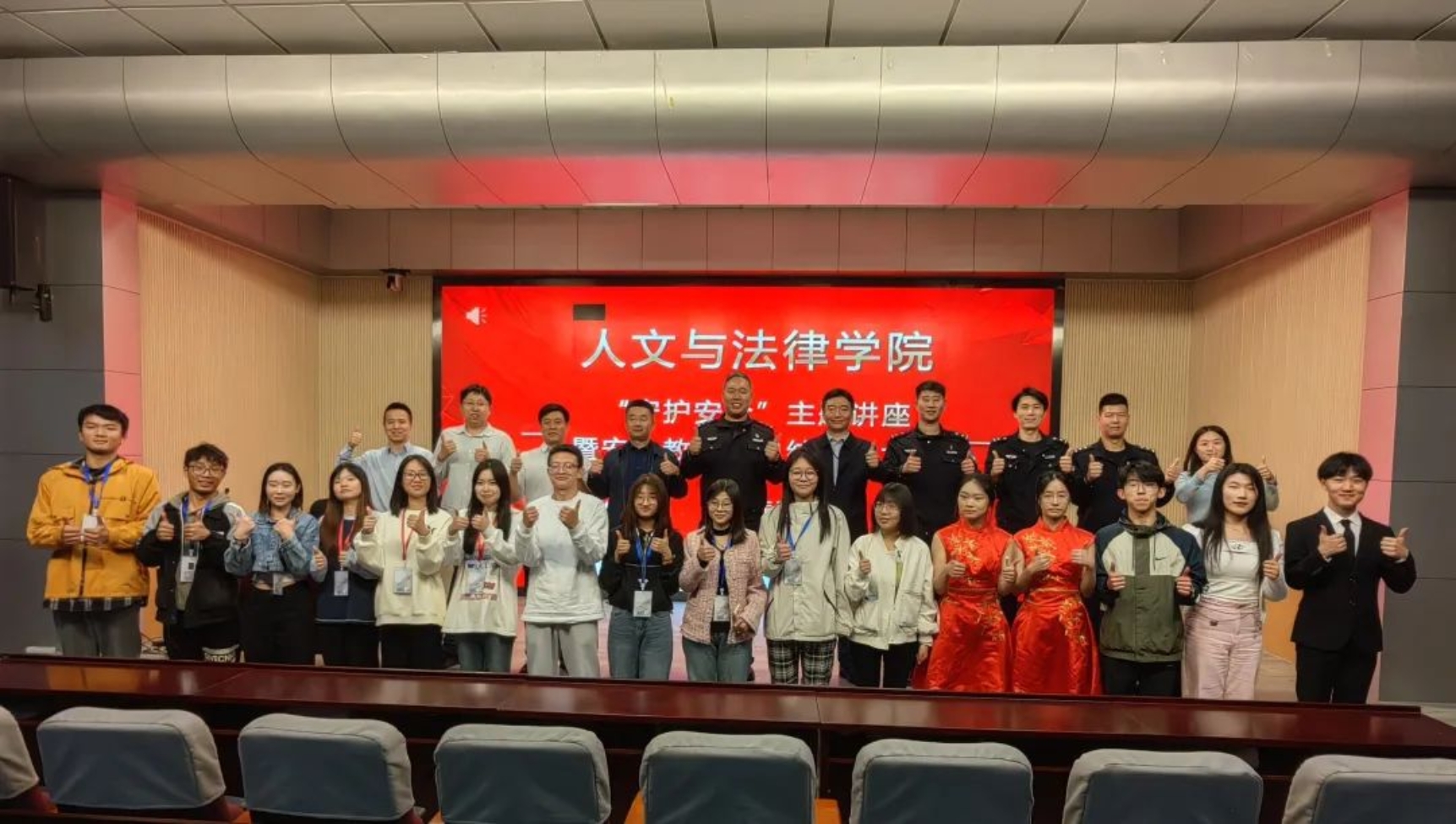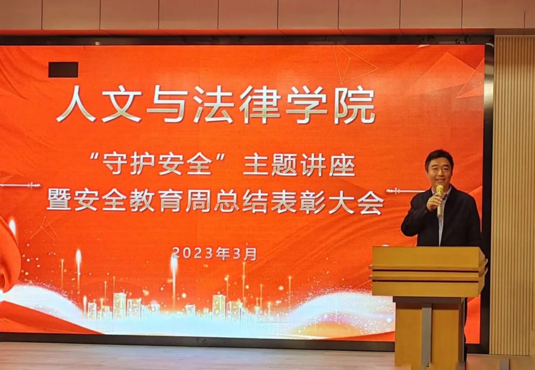 3月10日下午,学院在红桥校区东院开展“守护安全”主题讲座暨安全教育周总结表彰大会。出席本次活动的嘉宾有:公安红桥分局丁字沽派出所副所长杜牧、团支部书记边龙飞、宣传民警丁佳硕、红桥区见义勇为协会干事张鑫,蜜桃视频 安全工作处副处长田敬贤、文法党委副书记兼副院长李彦磊、安全工作处陈安及全体辅导员。文法学院大一至大四全体班干部和宿舍长参加会议。