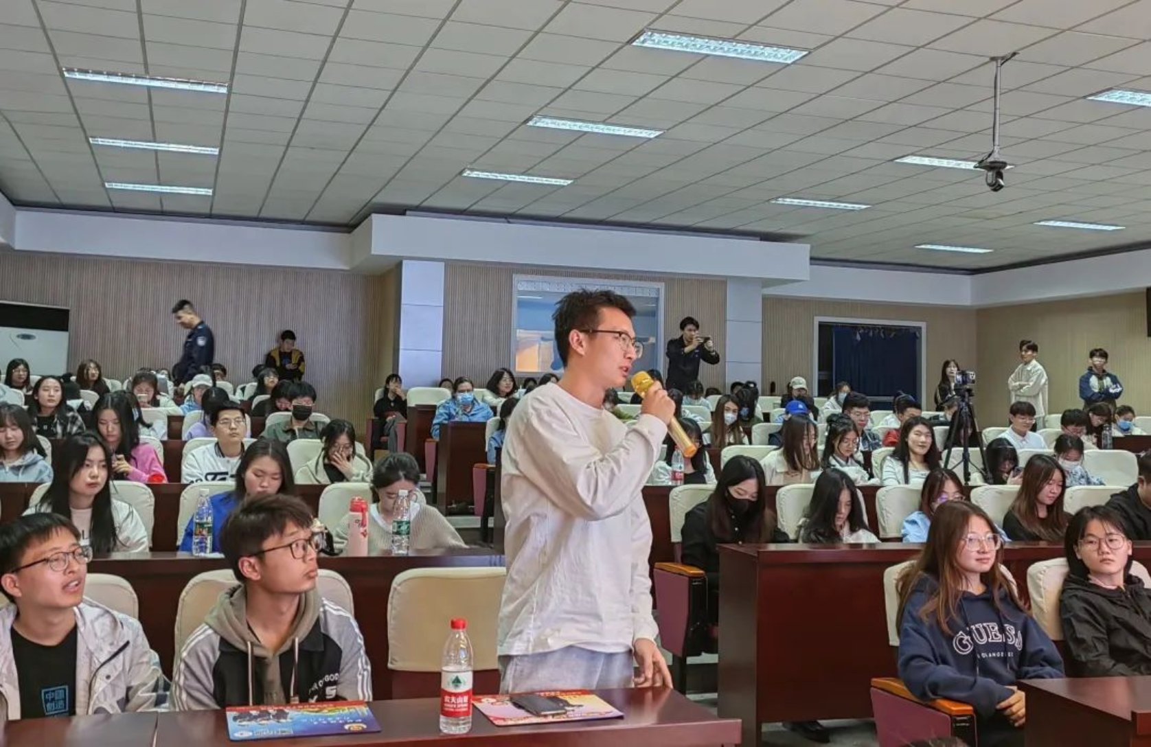 讲座的最后对本次安全教育周宿舍安全卫生评比大赛优秀宿舍进行表彰,号召同学们向榜样看齐。