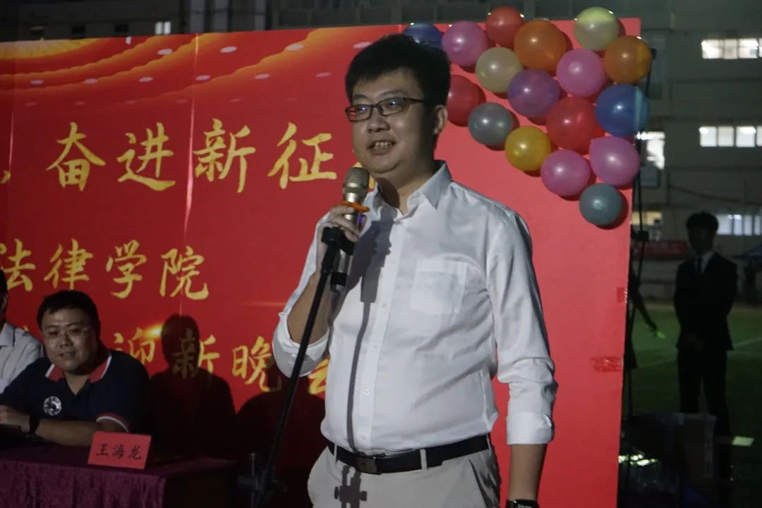 今夜,笑声朗朗,欢聚一堂;明朝,促膝并肩,遨游课堂。秋韵渐浓,相约九月,何其有幸,我们相遇在文法学院。“天行健,君子以自强不息”,在大学这个新的起跑线上,同学们应谨记领导和老师的教诲。“勤慎公忠为理想,学海无涯苦作舟”,我们应珍惜时光,敢于担当,不负韶华。让我们以先人为向导,与伙伴比肩同行,一起创造享受无比绚烂、无限光明的大学生活,铸造属于文法学子的华章。