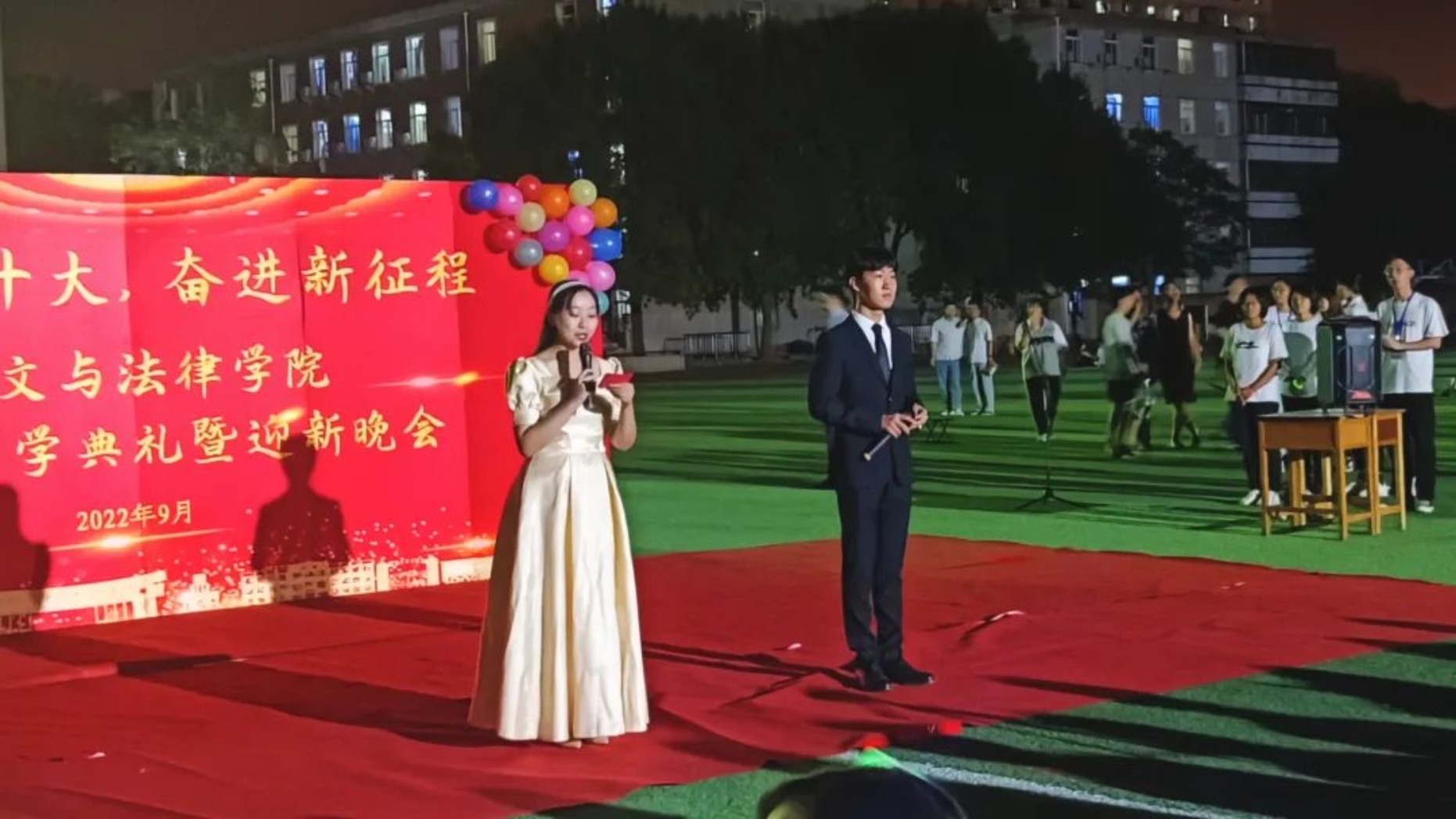 朗朗金秋,丹桂飘香,迎远方朋,展未来翼。我们等候着温柔的九月,期待着相遇的时刻。为迎接大一新生,帮助新生适应大学生活,增进学生之间的感情,加深新生对学院的了解,增强新生对学院、学校的归属感,9月14日下午6点半,蜜桃视频 2022级新生开学典礼暨迎新晚会在东院操场圆满举办。