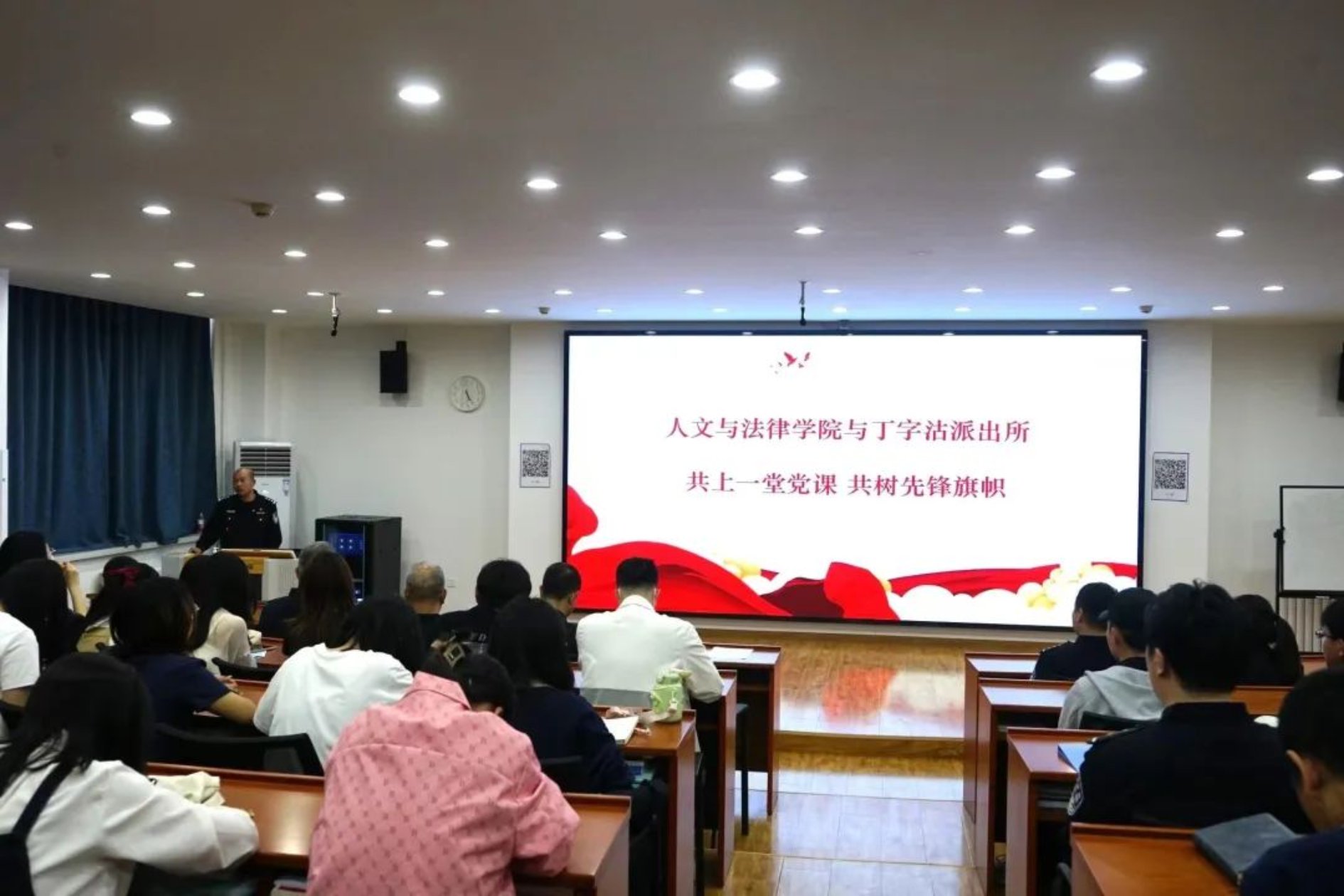4月19日下午,一场“特殊”的党课在蜜桃视频 开讲了,丁字沽派出所15位民警和文法学院70余名党员代表共同聆听一堂党课。