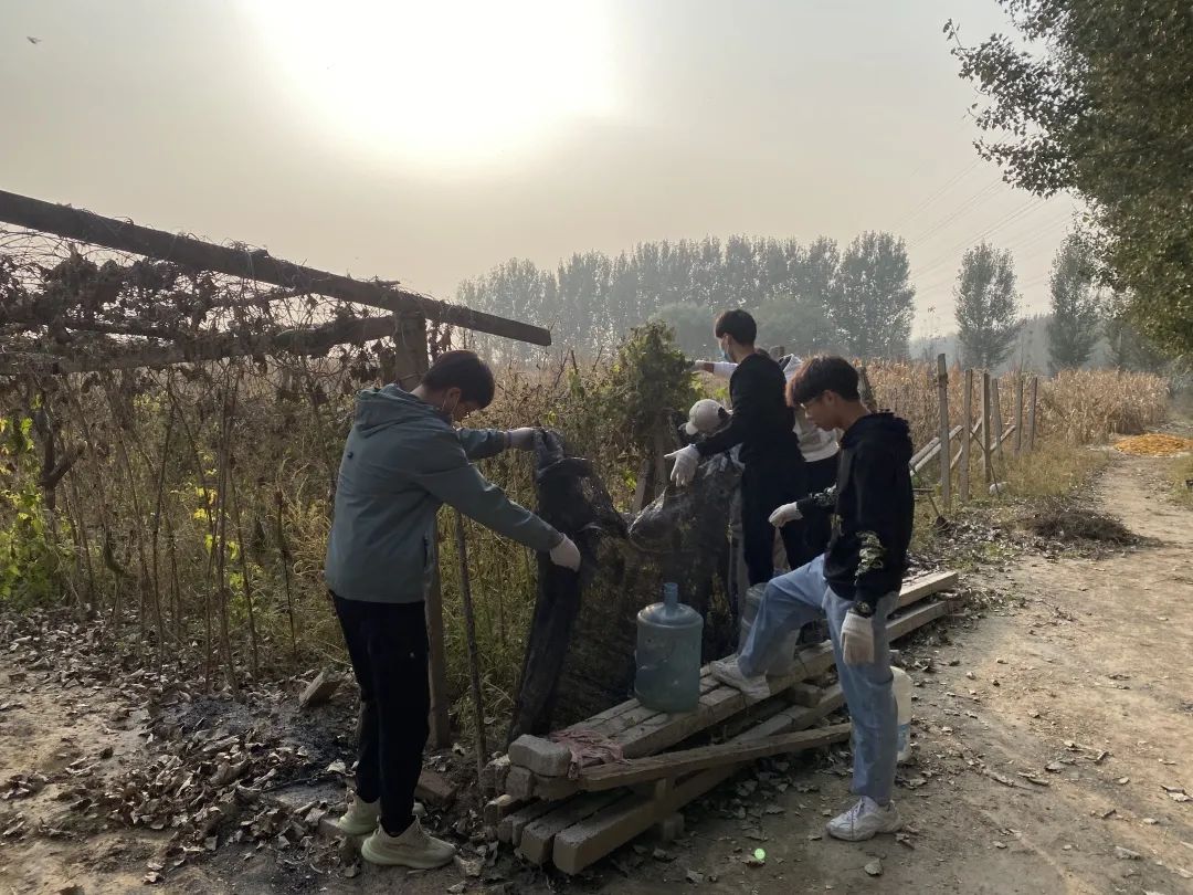 “秋风起兮白云飞,草木黄落兮雁南归。”秋天带走了最后一丝绿意,黄叶悄然落下。同学们带着似火的热情,伴随着飞舞的落叶,将它们会聚成一堆堆的小山。文法学子们整理院内杂物,为孩子们提供一片整洁的活动区域。