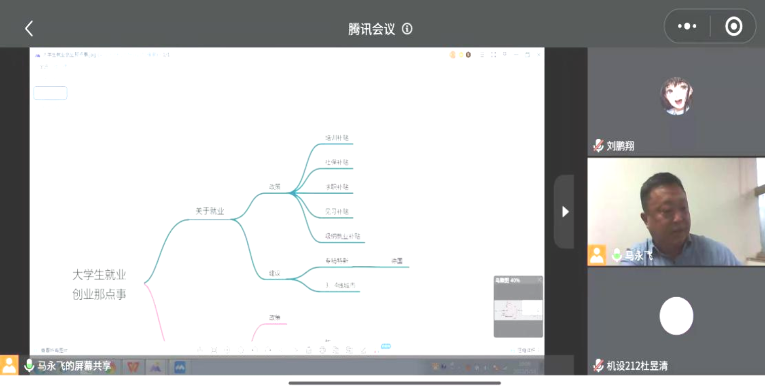讲座中,马永飞校友采用思维导图的方式分模块地给学弟学妹们讲解就业与创业问题。在就业方面,深入阐述了国家及河北省的支持政策,主要有培训补贴、社保补贴、求职补贴、见习补贴、吸纳就业补贴等。马永飞学长诚恳地建议大家综合考虑就业城市,鼓励学弟学妹们前往国家需要人才的地区。在创业方面,深入解析了国家“双创”方面的支持政策,详解“创业”需要的基本素质。他指出,能力和经验是必要的条件,青年人创业务必要紧随时代发展,并且一定要顺势而为。他提醒道,无论是就业还是创业,最根本的都是提升自身知识素养,为此,要保持终身学习的理念,及时适应环境,掌握学习方法。