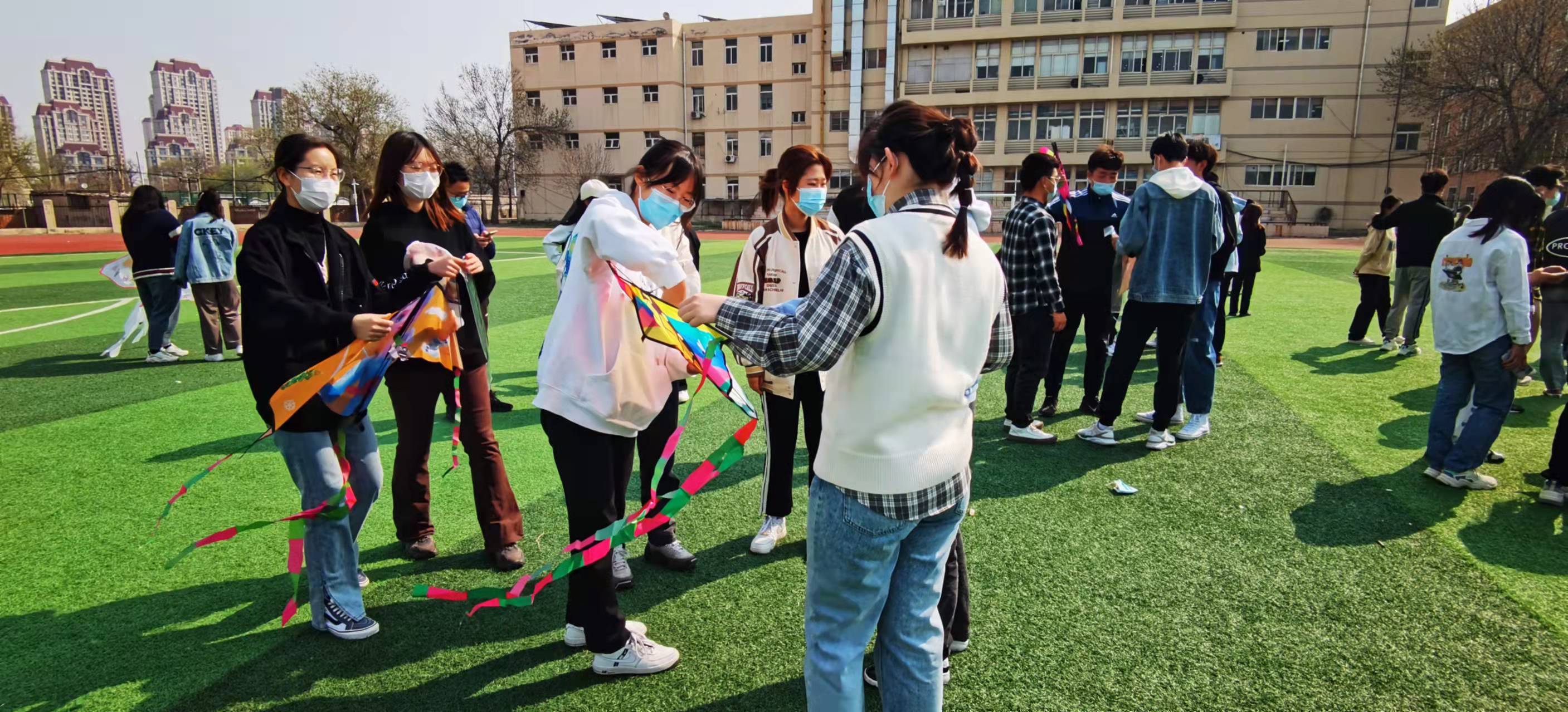 20202021级返校生和部分研究生在许彦老师的带领下一同参加“放风筝”和“跳绳活动”。