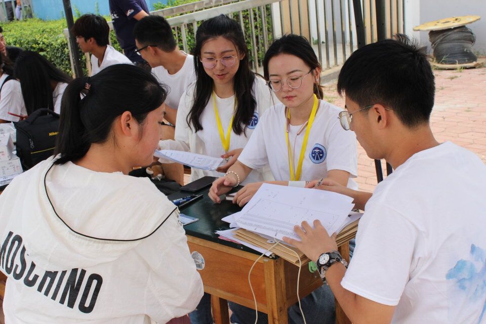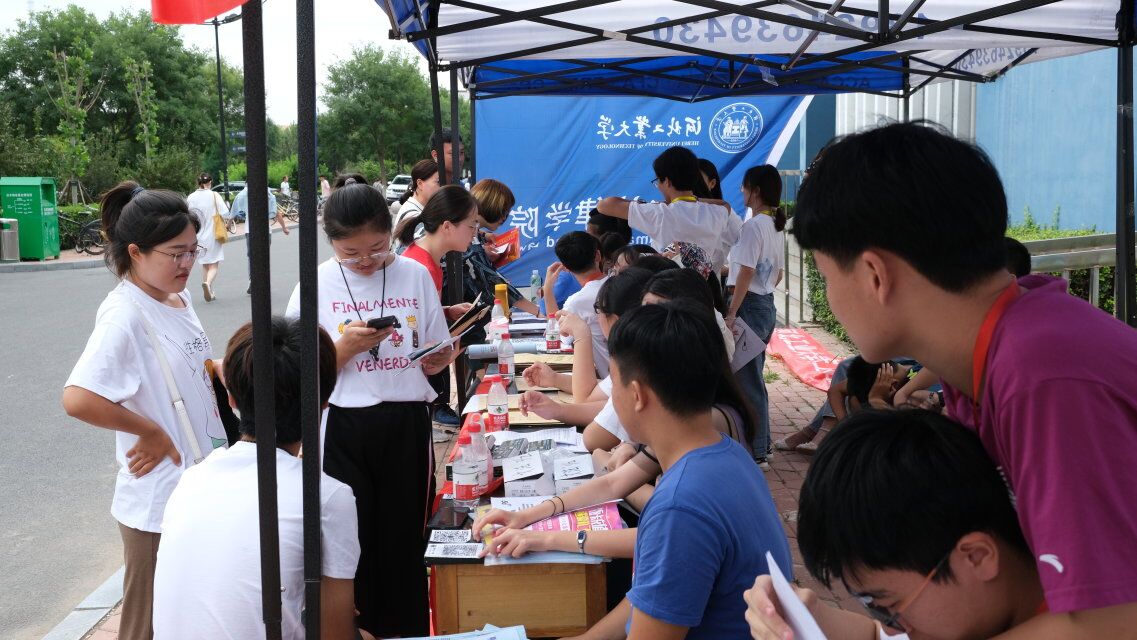 经过漫长的暑假,在余热犹存,秋意初现时,蜜桃视频 2019级新生于8月22日、23日正式报道。22日-23日上午8点到下午6点,蜜桃视频 在木华园七栋宿舍楼下搭起帐篷,组织纳新活动。迎新摊位前新生来来往往,络绎不绝,有时甚至排起了长龙。他们来自五湖四海,自天南地北赶赴津门,他们脸上洋溢着的兴奋与快乐,内心的无限憧憬和满心欢喜,却是相似的,也是最真实的。院学生会的学长学姐与新生负责人认真投入工作,为新生们收取材料、分发物品、指明道路,积极帮助新生们解决问题,迎新工作秩序井然。