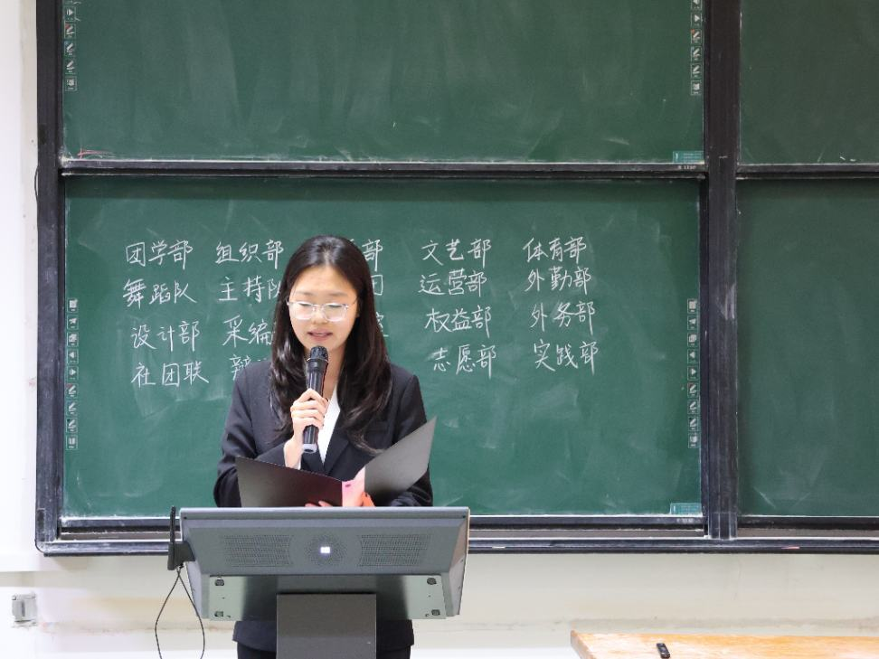刘潇璇主席以“长风破浪会有时,直挂云帆济沧海”开篇,向新加入的成员致以热烈欢迎,并提出三点期许:以高度责任心对待每一项工作、以严谨态度完成每一项任务;胸怀大局、强化团结协作;坚守服务导向、筑牢责任基石,共同营造务实高效、风清气正的工作氛围,为学院发展贡献青春力量。