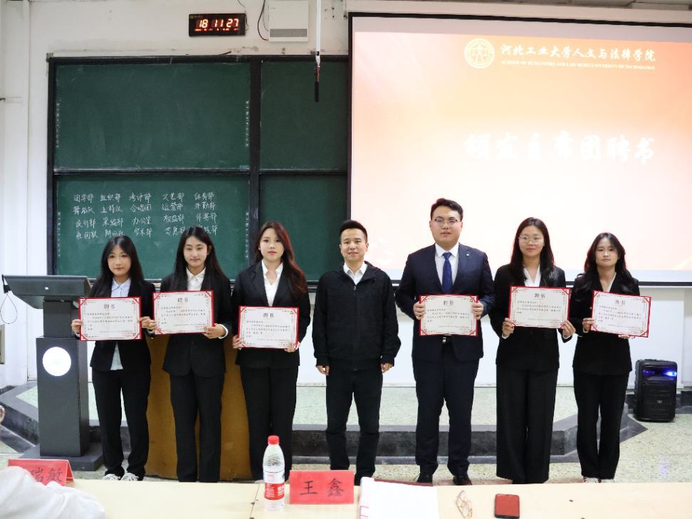 随后,王鑫老师为共青团蜜桃视频 委员会第二十四届学生组织主席团成员颁发聘书,在场师生共同见证了这一责任的交接与传承时刻。