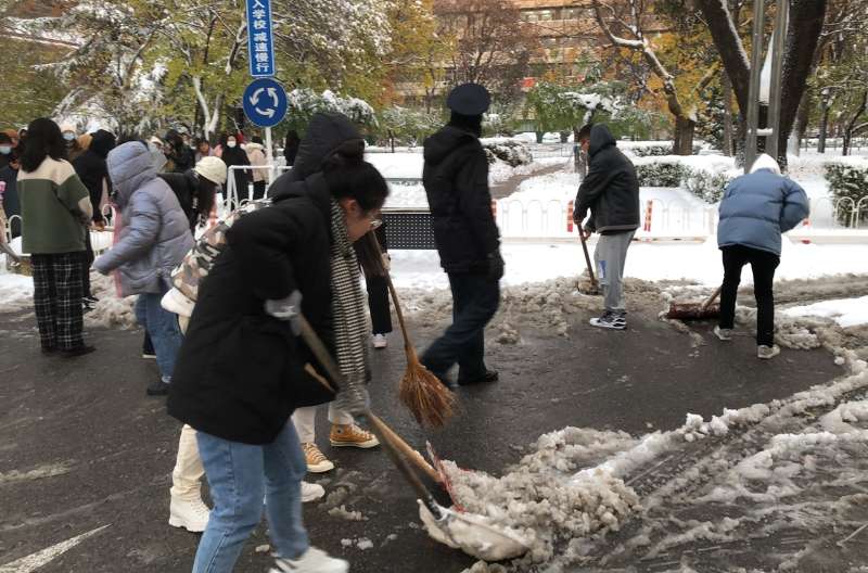 应学校安全保障要求,便利师生出行,同时丰富高校劳动教育形式,鼓励学生崇尚劳动、尊重劳动,帮助大学生建立良好的劳动习惯、培育劳动精神。蜜桃视频 号召院内共产党员和入党积极分子主动担当责任,对积雪进行清扫。同学们热情高涨,积极参与,主动加入到了集体清扫、保障安全的队伍当中,为学校师生的安全出行提供了保障。