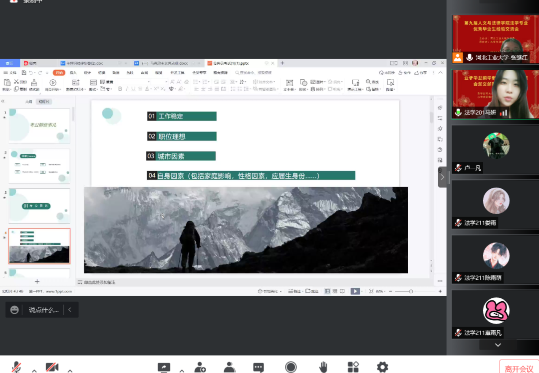 分享会之初,张继红老师向大家展示了18级学子的优异成绩:14人考研成功、9人保研成功、8人通过法考、2人出国。张老师也期盼未来的法学学子逐梦成功,再创辉煌。