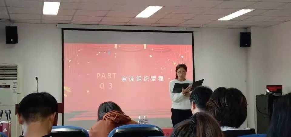 接着协会主席赵芳瑜宣读组织章程,在主席赵芳瑜同学的朗朗宣读中,一个组织的雏形逐步诞生,自立自强管理中心正式成立了!站在新的起点,我们豪情满怀;实现新的跨越,我们重任在肩。
