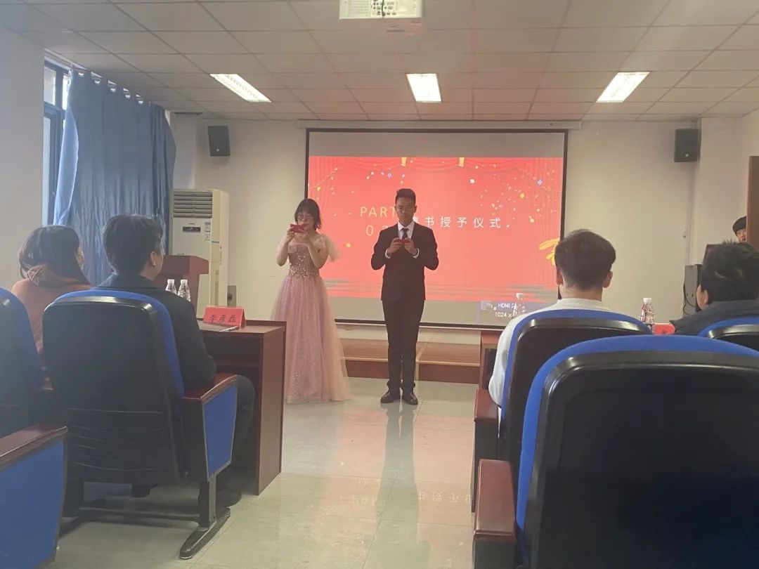 大会第三项为聘书授予仪式,学院党委副书记兼副院长李彦磊老师及学生资助管理中心赛麦提老师为主席团以及组织成员颁发聘书,并对每位成员表示祝贺与鼓励。
