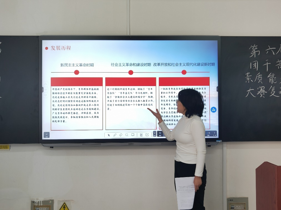 初赛中脱颖而出的9位同学成功进入复赛。复赛形式为主题微团课,九位选手以“新时代的青年担当”为主题,围绕党的最新理论成果、党的青年运动史、新时代中国特色社会主义的伟大成就、传承红色基因等内容制作PPT进行微团课演讲,评委老师会进行打分点评,并最终选拔三名选手晋级校级决赛。