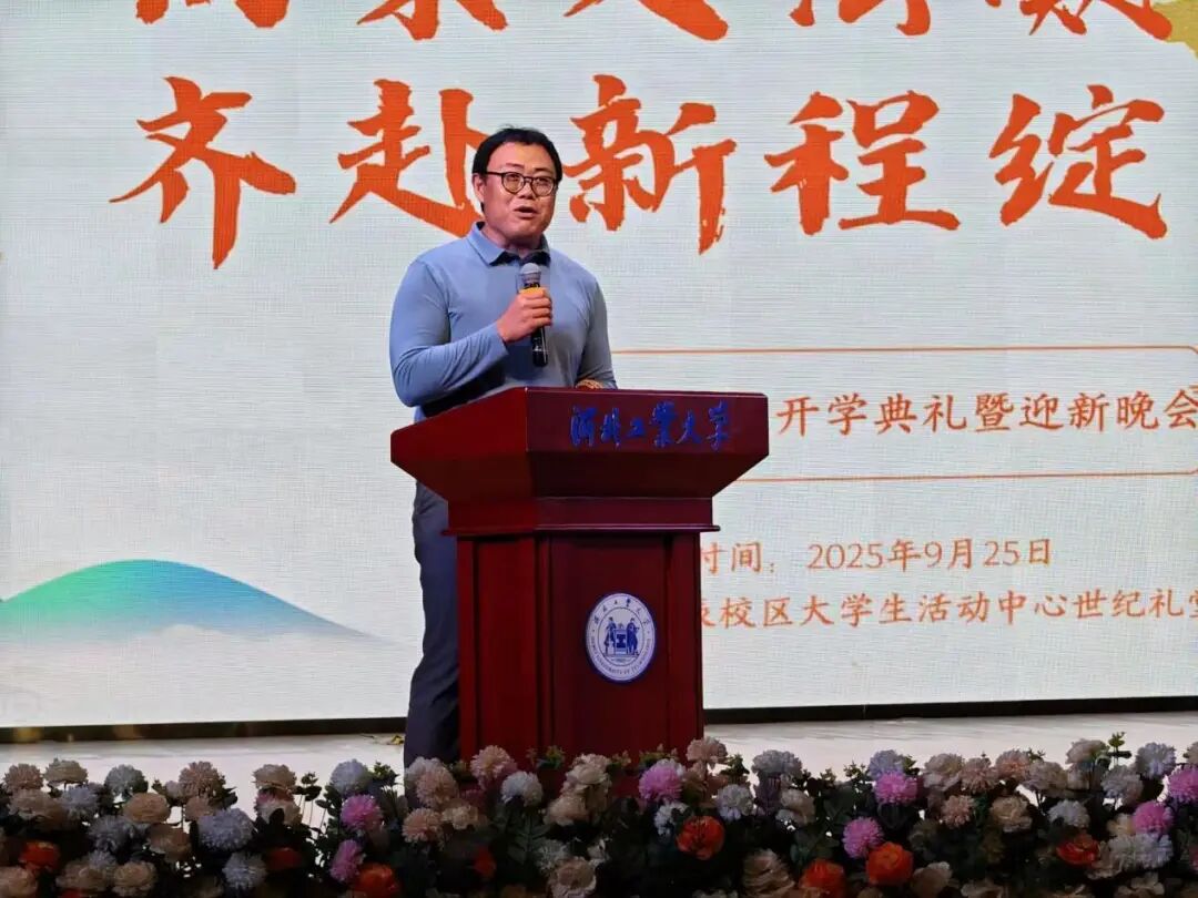 接下来,各系主任分别为新生送上了关于大学与人生的宝贵指引。中文系党支部书记钱寅老师希望同学们怀揣梦想,勇于担当,追求“不被世俗定义的人生”;法学系主任王海龙老师希望大家在成长路上不要遗失本真,要永葆天真,用纯真与善良的底色描摹未来徐徐画卷;公管系主任李亚鹏老师则强调思维重塑比知识更加重要,鼓励同学们成长为思想深刻、情绪饱满、有底线、有担当的堂堂正正的“人”。