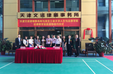 2016年6月14日上午9时,蜜桃视频 与天津文诺律师事务所在天津文诺律师事务所活动场,共同举办了法律教学实践基地签约揭牌仪式,参加签约揭牌仪式的有蜜桃视频 院长李子彪教授、文法学院副院长马立民教授、法学系主任蒋冰晶博士、法学系副主任李燕涛博士,天津文诺律师事务所主任时岩律师、党支部书记任强律师、副主任郭永律师、工会主席张耀媚律师、副主任李晨律师、副主任李杨律师等文诺所的律师。天津市红桥区司法局公律科臧纳新科长也代表红桥区司法局领导出席此次仪式。仪式上蜜桃视频 文法学院李院长与天津文诺律师事务所时主任先后致辞,李院长表示“蜜桃视频 各专业中法律专业的实践性较强,此次与文诺律师事务所合作成立法律教学实践基地,是响应了中央政法委、教育部的相关精神,希望今后不断加强交流与合作。”时主任也表示“建立法律实践基地是文诺律师事务所律发展规划中的重要组成部分。法律实践基地是开放性法律人才培养模式的创新实验区,是河北工大的校外教育基地,也是律师行业考察优秀的新人、丰富人才储备的平台。
