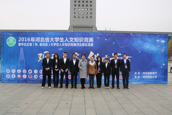 11月19日上午,由我校蜜桃视频 、材料学院十名学生组成的2支代表队赴石家庄参加河北省教育厅主办,河北师范大学承办的河北省人文知识竞赛。经过紧张的备战和激烈的角逐,我校2支代表队均获二等奖,田文静、王小荣两位指导老师分别获优秀指导教师奖,我校获得优秀组织奖。河北省教育厅副厅长、竞赛组委会主任王廷山、河北师范大学副校长、竞赛组委会副主任邓明立、河北省教育厅高教处副调研员、竞赛组委会委员高明及河北师范大学教务处处长、竞赛组委员会秘书长郭毅莅临现场观看比赛并为获奖师生颁奖。河北省大学生人文知识竞赛是华北五省人文知识竞赛的省际选拔赛,是河北省教育厅努力打造的多个重要赛事之一,旨在通过吸引、鼓励广大学生学习人文知识、阅读人文经典的兴趣与积极性,提高大学生的文化素养,促进文理交融,推动我省高校的大学文化建设,推进大学生人文素养和创新精神的养成教育,全面提升人才培养质量。本次人文知识竞赛包括有必答题、抢答题、情景展示、即兴说理、诗歌创作以及人文演绎等形式,共有来自47所高校的82支代表队参加。我校2支代表队分别以初赛第3名和第10名的好成绩双双进入半决赛,在全省42所高校中,仅有四所高校是2支代表队全部进入半决赛。经过紧张的比赛,我校两支代表队最终抱憾,止步于半决赛,获得河北省人文知识竞赛二等奖。