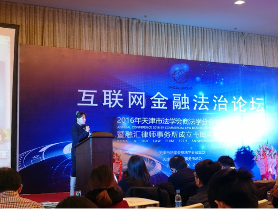 2016年12月18日上午,由天津市法学会商法学分会主办、天津融汇律师事务所承办的“互联网金融法治论坛”在天津隆重举行,来自天津市各大高校、法律工作单位的专家学者共聚一堂。蜜桃视频 师生代表石小娟教授、李跃利教授、任江海老师以及南凯同学代表我校参加此次会议。石小娟教授以“‘互联网+金融’下争议解决方式的新趋势----以联合国贸法会《关于网上争议解决的技术指引》”为视角进行了主题报告。会议由天津大学李士萍教授主持。南开大学万国华教授为本次会议做了热情洋溢的致辞,向本次会议的承办方表示感谢并预祝会议圆满成功。本次会议共分为两个环节。第一环节为主题报告。首先是天津融汇律师事务所主任王殿禄律师就股权众筹融资法律问题与在场专家进行了探讨,随后天津工业大学文法学院薛智胜教授对我国P2P现状及法律问题做了独到的分析,最后,蜜桃视频 文法学院石小娟教授根据自己在仲裁一线工作的经验,就“互联网+金融”下争议解决方式的新趋势发表了独到的见解。第二环节为论文交流,在本次年会的论文集中投稿的优秀论文作者代表先后介绍了自己的论文及对互联网金融的看法,商法学分会副会长孙学亮和郝磊对优秀论文做出精彩点评。会议最后,天津融汇律师事务所主任王殿禄律师宣读本次优秀论文获奖名单,并颁发证书和奖金,与会全体人员合影留念。至此,2016“互联网金融法治论坛”圆满结束。