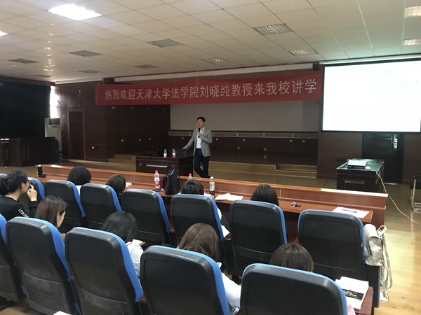 2018年4月19日,天津大学法学院刘晓纯教授来我校讲学,此次讲座的题目为《民法的思维方式》。我校宣传部部长陈鸿雁、文法学院副院长马立民、法学系教师石小娟、蒋冰晶、闫文博、宋梅以及法学系学生参加了讲座。针民法的思维方式这一主题,刘教授分别阐释了民法思维的起点和终点,民法思维的基础理念,若干典型的民法思维方法,如事后思维、效率思维、边际思维、单一所有人思维、“如履薄冰”思维。讲座中,刘教授语言风趣,同学们几次爆发出热烈的掌声。