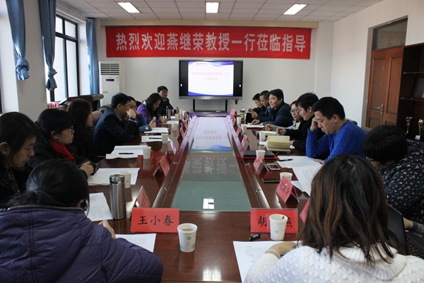 12月28日下午,北京大学政府管理学院常务副院长、全国MPA教学指导委员会副主任燕继荣教授、北京大学政府管理学院党委副书记、副院长姚静仪对我校MPA教育中心进行了学术访问。校党委宣传部部长陈鸿雁、文法学院院长李子彪、研究生院副院长白仲航、文法学院副书记兼副院长李彦磊出席了本次活动。燕继荣教授一行首先听取了我校MPA中心建设情况的汇报,对我校MPA建设工作进行了充分肯定,同时就研究方向设置、课程建设、实践教学、案例研究等方面提出了许多宝贵意见。姚静仪副书记着重就MPA学生管理、MPA文化建设谈了北京大学的经验。随后,与会人员进行了深入的交流,座谈会气氛热烈。大家一致认为,燕教授一行对促进我校做好MPA建设工作具有重大的推动作用。