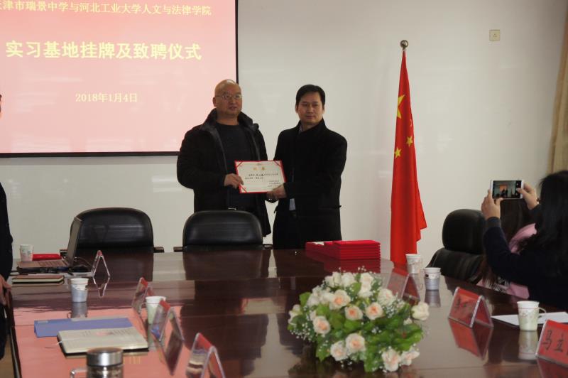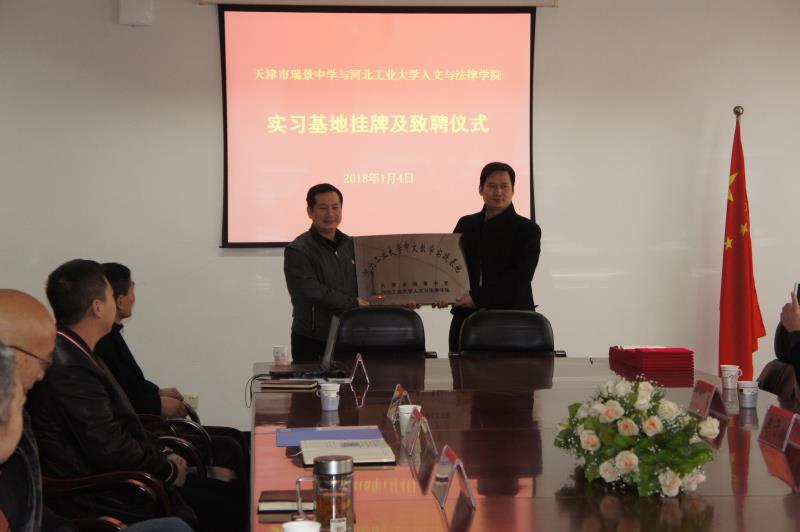 2018年1月4日上午,蜜桃视频 与天津瑞景中学实践基地签约暨兼职导师聘任仪式在天津瑞景中学举行。蜜桃视频 院长李子彪、副院长马立民、瑞景中学校长马朝辉、副校长黄会来、主任程双喜、语文学科组组长韩勇出席了本次活动。首先,程双喜主任代表瑞景中学欢迎蜜桃视频 领导及师生来访。然后双方领导讲话。瑞景中学马朝辉校长介绍了瑞景中学的历史和现状,指出瑞景中学与蜜桃视频 合作是强强联合,能实现资源共享,共同培养学生。李子彪院长简单介绍了我校、蜜桃视频 的情况,以及最近我校部分学科入选国家一流学科等方面的情况,认为我校与瑞景中学离得很近,双方合作占有天时、地利、人和,现在国家大力弘扬传统文化,中文系与瑞景中学有很多合作空间。