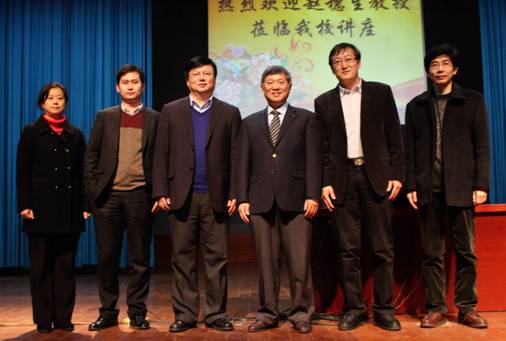 3月16日下午,美国丹佛大学约瑟夫·科贝尔国际关系学院终身正职教授兼美中合作中心执行主任赵穗生教授在大学生活动中心礼堂为我校师生做了题为《建立新型大国关系与中美在亚太的角力》的学术报告。报告由副校长刘兵教授主持。赵穗生教授是美国国际关系学界重要的中国学者,是美国外交思想库具有影响力的人物。赵教授以什么叫“遏制”为起点,从全球大局、中美国力、美国人民意愿等多方面详细阐述了“美国为什么不能遏制中国”、“为什么遏制不了中国”,以及中国作为世界第二大经济体还需注意的“四个方面”,最后,他说美中两国应该在现实主义基础上建立一种基于权力均衡的互利共赢的新型大国关系,使中美关系真正成为习近平主席所说的“世界稳定的压舱石,世界和平的推进器。”